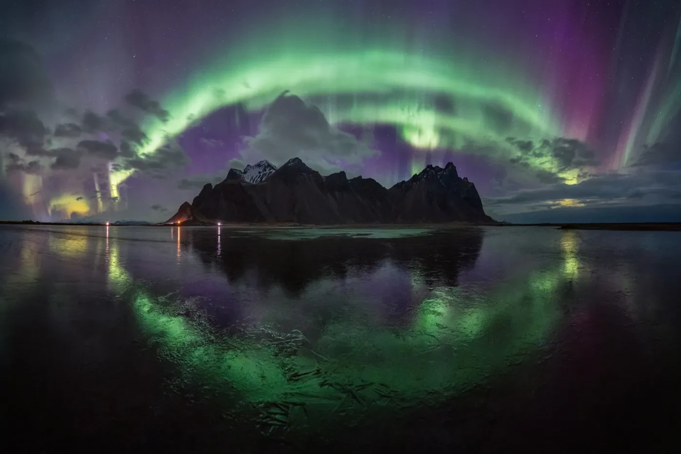 "The day began with rain and overcast skies. The forecast was that the aurora would be quite faint, so it did not bode well for an epic night. As evening approached, the Kp index [global geomagnetic activity scale] forecast increased and the sky began to clear, revealing the stars. So, I grabbed my gear and drove to the small peninsula of Stokksnes," says Luis.