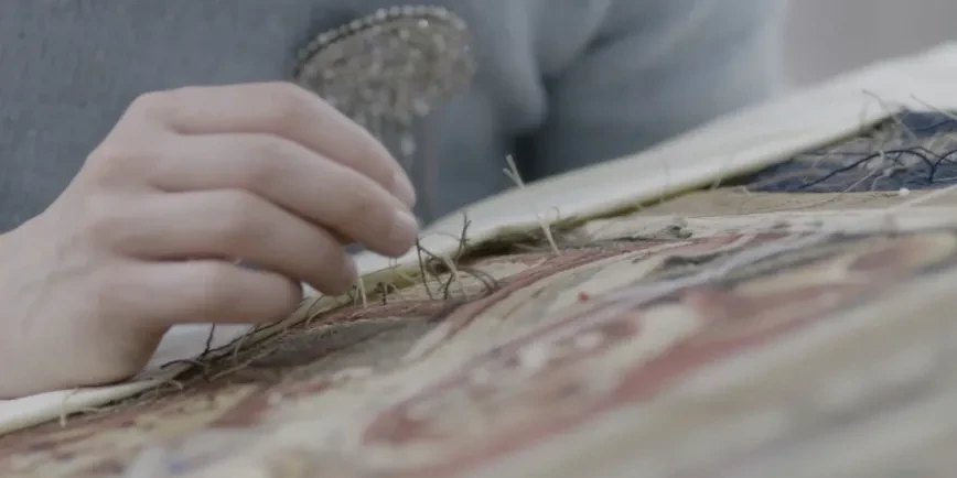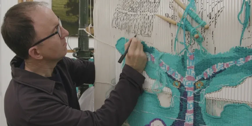 Feeling Blue is a new commission created by multidisciplinary artist Alberta Whittle and Dovecot Studios in Edinburgh. Currently on display in the Queen’s House, the tapestry is rooted in maritime traditions.