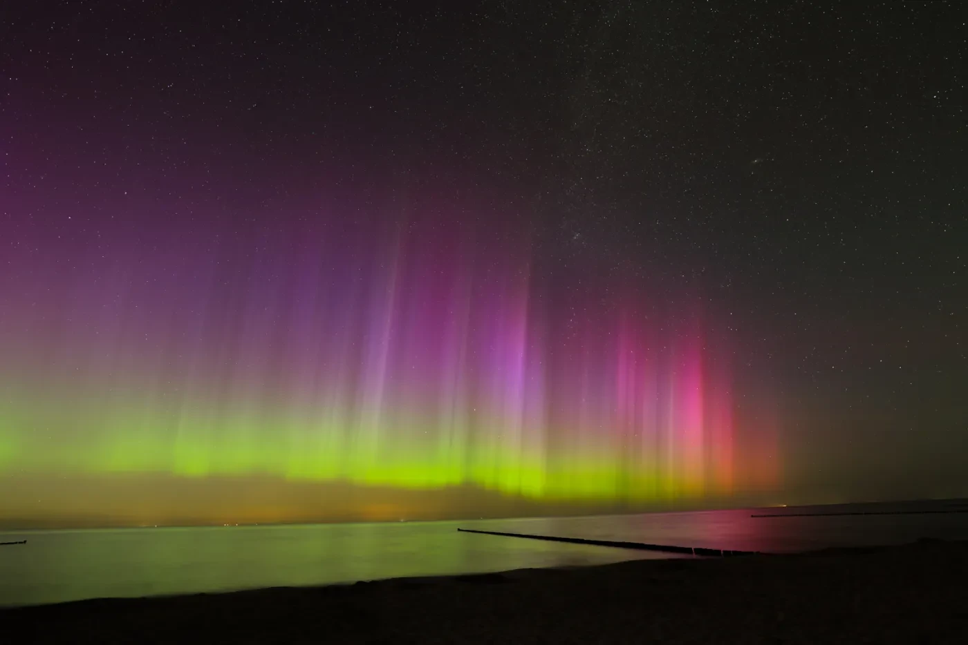 "Determined not to miss this rare event, I drove five hours from Las Vegas to Mono Lake, knowing I had to be back the next morning. The risk paid off – after a stunning sunset, vibrant ribbons of magenta and green lit up the sky, reflected in the still waters among the rock formations."