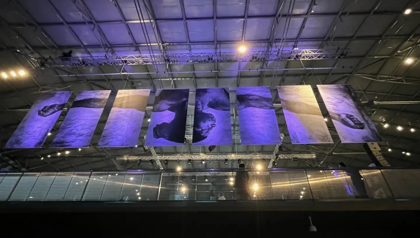 Artist EVEWRIGHT presents a powerful installation of 16 large-scale banners spanning Ocean Court along with poetry from Ionie Richards and a visceral atmospheric stormscape.