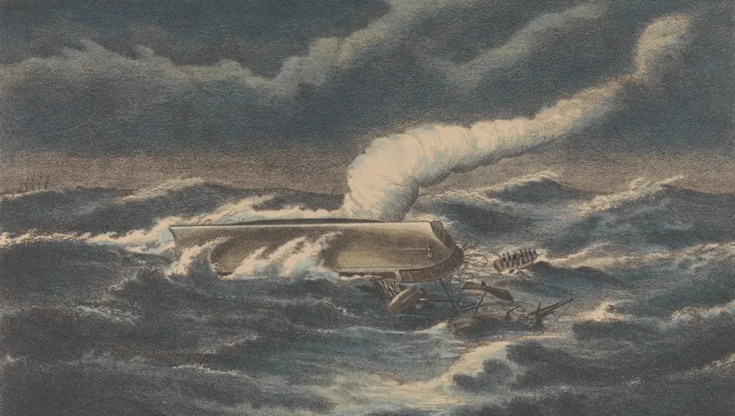 Nearly the entire crew of 500 men went down with this dangerously low freeboard yet fully rigged turret ship, including her controversial designer, Captain Cowper Phipps Coles. ‘Few such terrible disasters have ever happened at sea’, exclaimed The Times. ‘A greater number of lives may occasionally have been lost in a single wreck; but this wreck is that of one of the finest ships in the world, manned by one of the finest crews.’